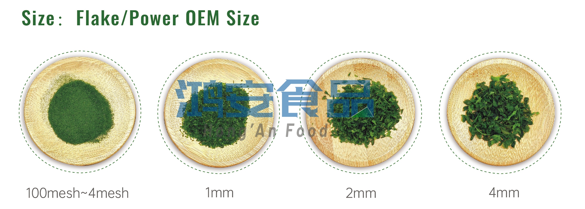 アオサは獨特の香りと鮮やかな緑色を持ち、食品に色味を添え、食欲を増進させる効果がある。また、カルシウム、マグネシウム、リチウムなどのミネラル、ビタミン、メチオニンなどのアミノ酸を豊富に含み、栄養価が高い食品である。當社ではお客様のニーズに応じたカスタマイズ生産が可能である。